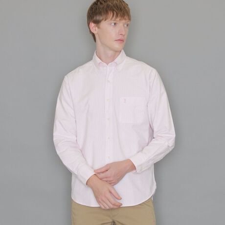 厳選したアメリカ原産の綿を使用し、美しい光沢とドライな風合いが特徴のオックスフォード素材を使用。2ミリ間隔の着やすいストライプ柄です。アメリカでもっとも歴史のある衣料ブランドが1980年代に使用した生地を糸の太さ、生地の密度、その生地が持つ特性を分析し、現代の技術を駆使して復刻させた、こなれた風合いが特徴の素材です。丈夫で経年変化をお楽しみ頂けます。