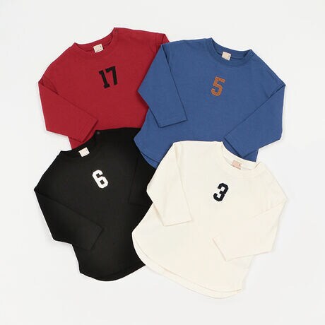 ナンバリングのアップリケがトレードマークになったTシャツです。癖がなくシンプルにまとめられたデザインはデイリーユースに大活躍間違いなし。薄すぎず厚すぎないちょうどいい生地感なので、季節をまたいで着まわせます。内側にはお名前を記入できるタグつき。※80、90サイズのみ肩開き【透け感】透けない【生地の厚さ】普通【伸縮性】あり【裏地】なし【ポケット】なし