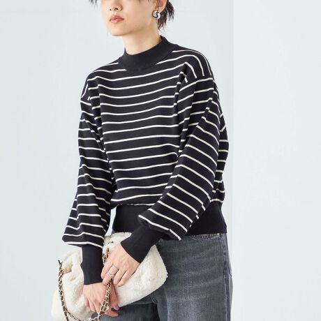 * 〈手洗い可能〉バック パール モチーフ ボタン ハイネック ドルマン ◇