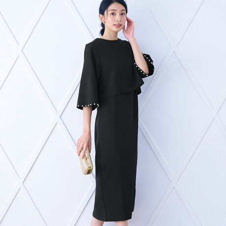 オケージョンスタイルにぴったりの袖パール付きのワンピース。