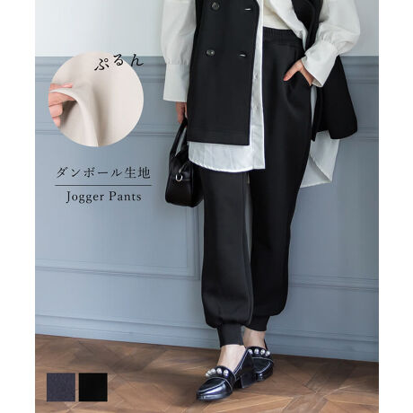 弾力と落ち感のあるダンボール素材を使用し、きれいな印象と着心地の良さがポイントのジョガーパンツ。
