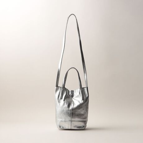 メタリックなシルバーカラーを纏った、ミニサイズの2WAYトートバッグ。