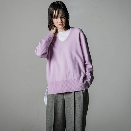 着回し抜群のウールカシミヤのスッキリVネックプルオーバー。