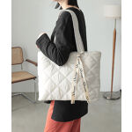 ・ロゴリボンがアクセントのキルティングトートバッグ。