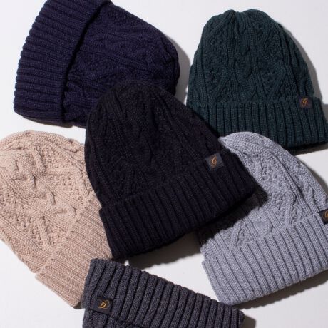 【GLOSTER/グロスター】ケーブル編み 裏ボア ニットワッチ ニット帽