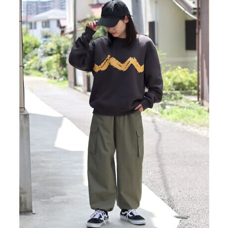 ワンポイントロゴ、バンド、リンガー、ラグランなどの長袖Tシャツ、バックプリント、カレッジ、フォトなどのスウェットパーカーと共におすすめのキャラクタースエットトレーナー。ショート丈のブルゾン、ロング丈のコート、キルティングコート、ダウンジャケット、中綿ベスト、ミリタリージャケット、マウンテンパーカーなどのアウターと合わせるとトレンド感アップします。タックワイドパンツ、シェフパンツ、ブラックジーンズ、ケミカルウォッシュ、テーパードパンツ、ジョガーパンツ、カーゴパンツ、クライミングパンツと合わせたスタイルがおすすめ。普段のサイズよりあえてワンサイズ大きいものを選んで、ゆったりとしたビッグシルエット、オーバーサイズでストリートスタイルに着るのもおすすめ。