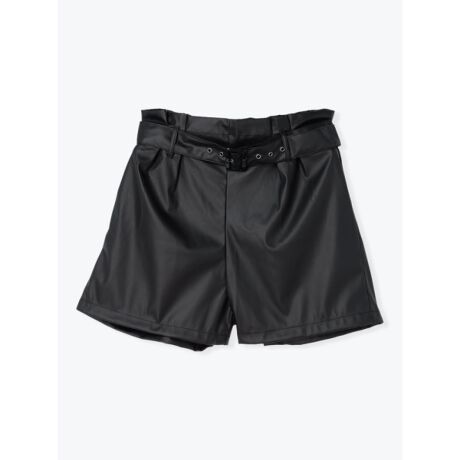 フェイクレザーで仕立てられたデザインが大人っぽさを演出するショートパンツ。