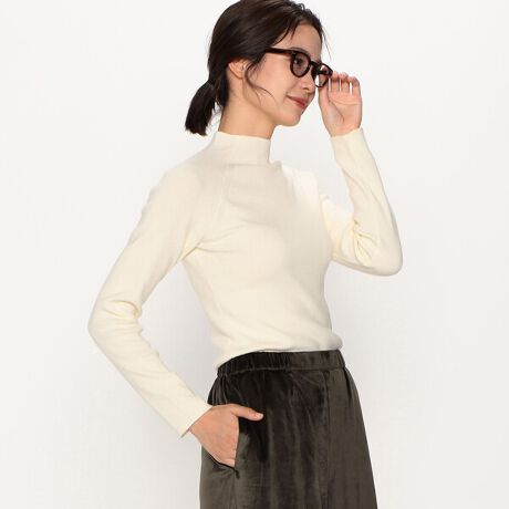 細めのリブ編みが綺麗めな印象で一枚着もレイヤードにも最適です。