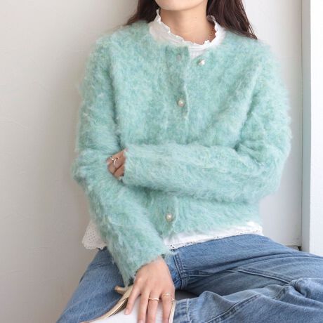 MIXシャギーショート丈カーディガン