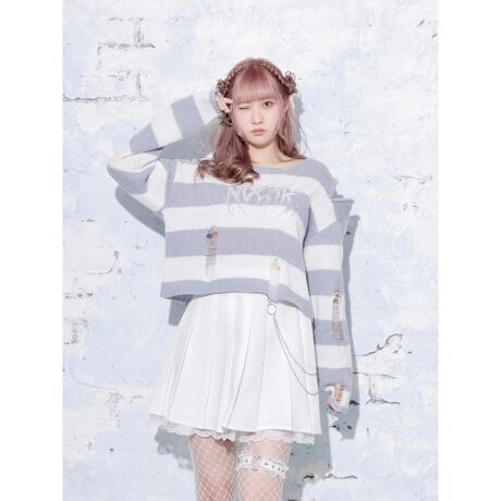肩ZIPやダメージ加工で辛口クールに仕上げたボーダーニットプルオーバー。