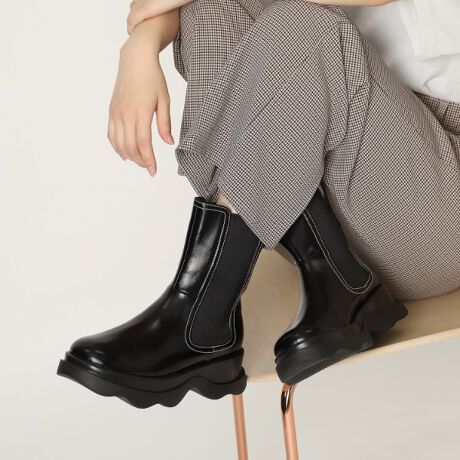 とても軽いウエーブソールと配色ステッチがポイントのサイドゴアショートブーツ。
