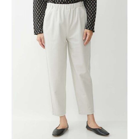 ウエストは、脇〜後ろまでゴムを入れ、カジュアルになりすぎないデザインに仕上げました。フロント部分はゴムがよらないので、スッキリ見え。 ゆったりしたシルエットながら、細コールのタテライン効果とくるぶし丈が細見えするデザイン。ポケット付き。
