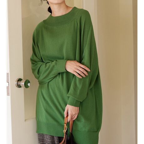 シンプルなニットチュニックなので、パンツやスカートにも合わせやすい優秀アイテム。