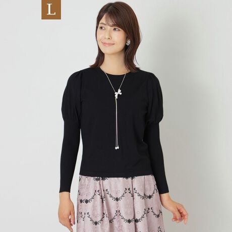 【L】レーヨンポリエステル パフスリーブニット