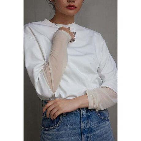 袖シアー切替トップス