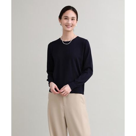 イタリアのメリノウールHARMONYを使用したシンプルなクルーネックニット。程よく詰まった衿周りが上品で、しっかりと編まれた身頃や裾は締め付け感もなく型崩れしにくい編み方になっています。袖口にはストレッチ糸を使用することで袖をたくし上げた時のホールド感を保ちつつ、伸びを軽減させるようにできています。単品使いはもちろん、同素材のカーディガンとアンサンブルでの着こなしがおすすめです。・水洗い可《HARMONY/ハーモニー》北イタリアの高級織物生産ビエラに本社があるトレーニョ社の主要ベーシック梳毛ウール。100%オーストラリア産のメリノウールのみを使用。厳選された原料だけを使用し、均一なクオリティとふくらみのある風合い、発色の良さが特徴です。■サンプル撮影商品■こちらの商品はサンプルでの撮影となっております。実際の商品とは、サイズや色味、素材、デザイン等の仕様が若干変更になる場合がございます。