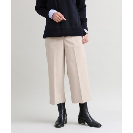 すっきりとしたシルエットのワイドパンツ。ウエスト周りをすっきりと見せつつ、後ろゴム仕様にすることで穿き心地の良さをプラスしました。程良い分量感とセンタープレスできちんと感もあるので、普段使いはもちろんオフィスシーンにもおすすめ。素材はソフトな肌触りとクリアな表面感が特徴のサキソニー風。裏起毛を施すことで温かさがあり、シーズンライクな着こなしを叶えます。ニュアンスのあるオリジナルカラーはシンプルなトップスに合わせるだけでスタイリングを華やかに彩り、ふくらはぎが隠れるクロップド丈だからスニーカーからブーツまで足元で雰囲気を変えた着こなしが楽しめます。・水洗い可・裏地無し・ポケットあり・ウエスト後ろ部分ゴム仕様■サンプル撮影商品■こちらの商品はサンプルでの撮影となっております。実際の商品とは、サイズや色味、素材、デザイン等の仕様が若干変更になる場合がございます。