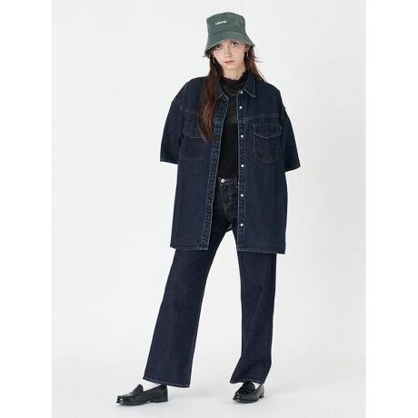 ボックスシルエットにデザインされた半袖のデニムシャツはありそうでなかったデザイン。同じカラーのボトムスと合わせてデニムオンデニムを楽しむのもお勧めです。どんなボトムスとも相性抜群の一枚です。