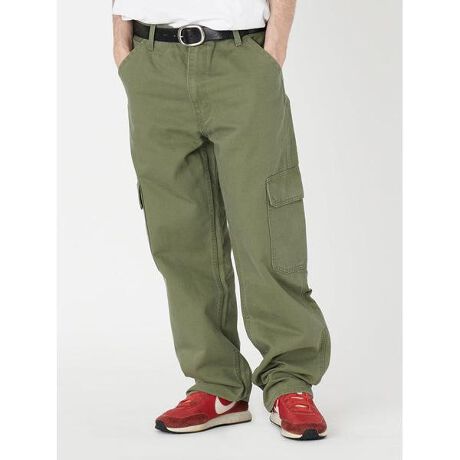 Silver Tab□を代表するシルエットの一つである「LOOSE」。全体的にルーズでゆとりがありながらも、裾に向かって細くなるテーパードになっているので足元が引き立つのが魅力のシルエット。両サイドにポケットを配して近年人気の高まってきているカーゴパンツ要素をプラス。90年代の雰囲気のみならずミリタリーやワークテイストにも合わせやすいオリーブカラーと生地感がポイントです。足元にボリュームを出しながら穿いて頂くのがオススメの一本です。