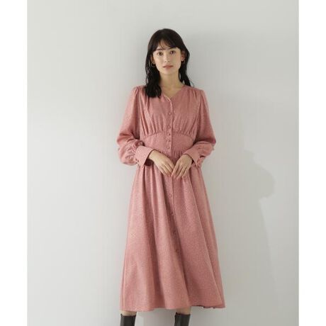 [design & styling]フロントのクラシカルなくるみ釦がポイントのワンピースは、Vネックで顔まわりがすっきり見えるフェミニンな印象の一枚。花柄プリントもさり気ない柄感のため、総柄ワンピースに挑戦しやすいデザインです。ウエストで切り替えを入れているので、スタイルアップ効果が期待できます。ボタンすべて開けることができます。[fabric]小花柄のエンボス加工を入れた、さり気ない柄感が特徴。微光沢感のある素材です。※裏地付き※モデルの着用画像の場合、光の当たり具合により、実際の色味と異なって見えることがございます。色味は、商品単体の画像をご参照ください。
