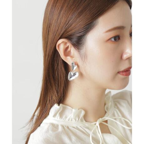 2つのハートモチーフが目を引くピアス。シルバーカラーの変形ハートモチーフが甘くなりすぎず、ほどよくカジュアル感をプラス。キレイめにも大人カジュアルにもマッチしてくれるので、コーディネートを選ばずお使いいただけます。※モデルの着用画像の場合、光の当たり具合により、実際の色味と異なって見えることがございます。色味は、商品単体の画像をご参照ください。
