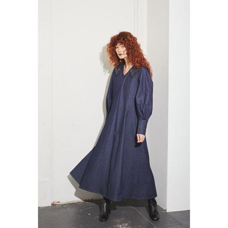 メリハリを生むデニムワンピースはウエストに切り替えを入れており、すっきりとしたシルエットになるようにこだわっています。