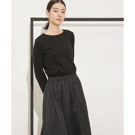 ・コンパクトなリブトップスとサテンスカートのドッキングデザイン