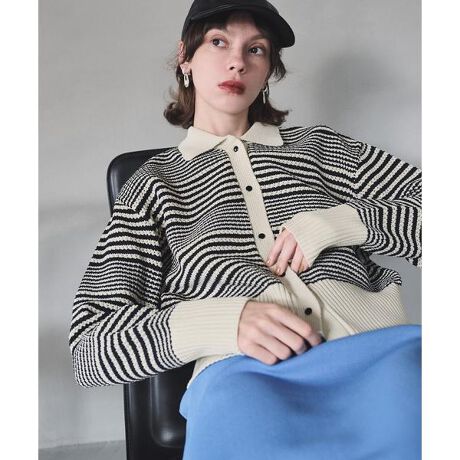 首もとの抜け感をつくれる衿付きニットは、フロントボタンを閉めても、開けてニットジャケットのようにも羽織れるデザイン。裾はリブ編みの幅を広くとって腰まわりにフィットし、コンパクトに見せてくれます。デニムパンツやハンサムなパンツ、ボリューム感のあるスカートと着回しができ、今年らしい雰囲気で着用いただけます。