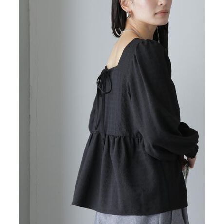 どんなシーンにも様になる大人フェミニンなギャザーブラウス。デコルテをキレイに見せるスクエアネックに、ボリュームスリーブとペプラムシルエットが女性らしく映えるデザイン。ややゆとりのあるサイズ感でインナーを合わせやすく、幅広いコーディネートを楽しめる1枚です。