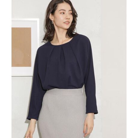 バックデザインとドルマンスリーブが抜け感を出してくれるロングスリーブカットソー。ブラウスのようなきちんと感のある見た目で、カットソーの着心地感がポイントの一枚。スッキリとしたサイズ感なので1枚はもちろん、ジャケットやカーディガンのインナーとしても合わせやすく通勤から休日スタイルまで幅広く活躍するアイテムです。