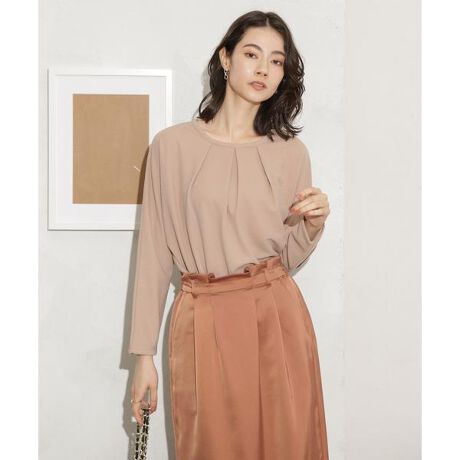 バックデザインとドルマンスリーブが抜け感を出してくれるロングスリーブカットソー。ブラウスのようなきちんと感のある見た目で、カットソーの着心地感がポイントの一枚。スッキリとしたサイズ感なので1枚はもちろん、ジャケットやカーディガンのインナーとしても合わせやすく通勤から休日スタイルまで幅広く活躍するアイテムです。