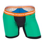 TOOT定番の全方向ストレッチナイロンで仕立てた「トライバル ロングボクサー」。心地よい肌触りで伸びやかな素材のため、ロング丈でも快適な穿き心地で股擦れが気になる方にもおすすめです。注目は、オリジナルのトライバル柄サイドライン。カラフルなグラフィックパターンが視線を惹きつけます。カラーバリエーションはホワイトとグリーン。効果的なブラック配色で全体をスタイリッシュに引き締めました。ホワイトは若干の透け感がございます。