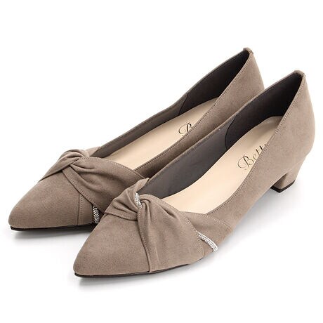 生地を折り重ねることで女性らしいやわらかなイメージのクロスリボンパンプス。