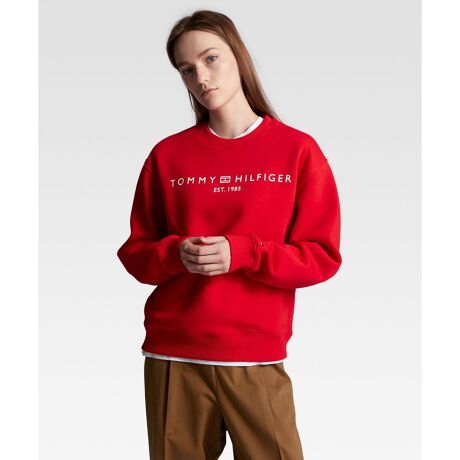 モダンベーシッククロップドロゴクルーネックスウェットシャツ