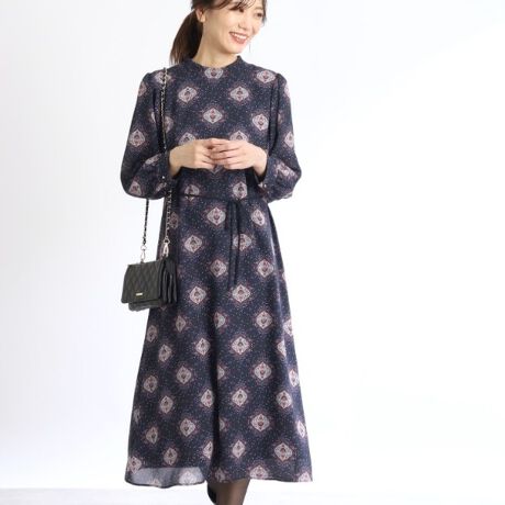 少しウエストをシェイプした、すとんとした縦長シルエットがキレイなプリントワンピース。
