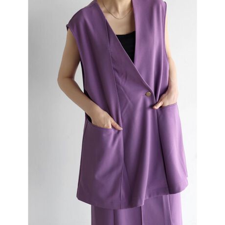 落ち感があり、マットな質感が上品見えするジョーゼット素材で仕立てたジレ。