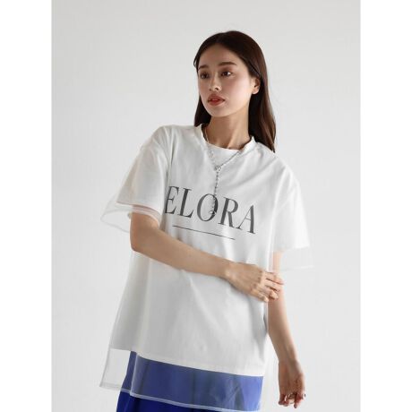 華やかなチュールとロゴTの組み合わせは、キレイめにもカジュアルに着こなせます。