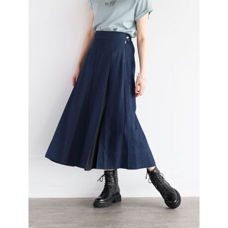 ■プリーツ切り替えが目を引くデニムスカートpoint