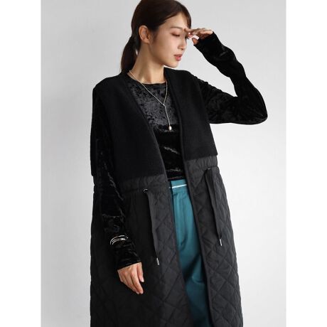 ボアとキルティングの切替デザインが1枚でサマになるロングベスト。