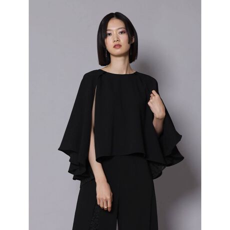 バックスタイルにレースをドッキングしたノースリーブの上から、ケープを被せたようなデザイン性のある一枚。スリットから腕を覗かせるデザインは二の腕が隠れ華奢さを演出。後ろスリットから見えるレースは動く度に揺れ洗練された女性らしさをプラスしてくれます。セットアップでオケージョン着用はもちろん、柄やシンプルなボトムと合わせるだけで普段使いもできる優秀アイテムです。※こちらの商品は(03-22-08799)とのセットアップ(別売り)です。■Brand Conceptresil / レジルwhite・blackで表現するcreative dress