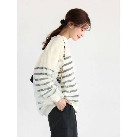ボーダー柄ニットにチュールをオンした、着るだけで映える主役級のデザインカーディガン。チュール使いでカジュアルコーデをVinらしいミックススタイルに仕上げてくれます。ボリューム感を引き立てる、コンパクトでシンプルなボトムとの合わせがおすすめ。 ※撮影画像は、光の当たり具合やお使いのモニター設定、お部屋の照明等により実際の商品と色味が異なる場合がございます。一番実物に近いお色味は生地画像でございます。