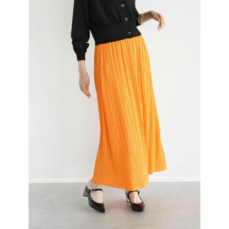 動く度に洗練された表情を与えるワッシャー加工を施したスカート。ウエスト部分のブラックのリブデザインが、インスタイルをした時のコーデのアクセントに。裏地付きで、ウエストは総ゴム仕様なのでリラックスして着用頂けます◎これからの時期にピッタリの鮮やかなオレンジとキミドリの2色展開です。 ※撮影画像は、光の当たり具合やお使いのモニター設定、お部屋の照明等により実際の商品と色味が異なる場合がございます。一番実物に近いお色味は生地画像でございます。