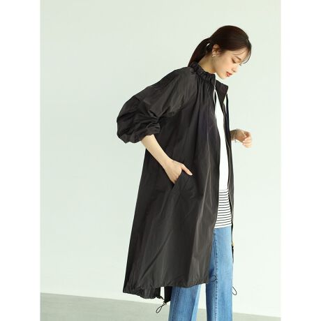 パリッとした素材がトレンドライクな抜け感満点のライトコート。袖と首回りにはたっぷりとギャザーを施し、さらに前後の裾にドロストをプラスし、細部まで拘ったデザインに。グログランリボンがさり気なく女っぽさを演出。ご自宅でイージーケアできるのも嬉しいポイントです。 ※撮影画像は、光の当たり具合で実際のものと色味が違って見える場合があります。商品の色味は生地の画像をご参照下さい。