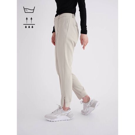 しっかりとしたセンターシームが入ったすっきりとしたシルエットのテーパードパンツ。