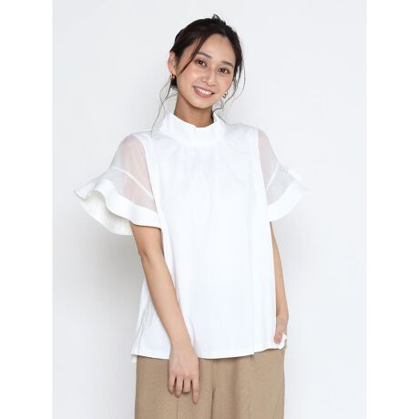 大胆なフレアスリーブはシースルー素材を使用した品の良い仕上がりです。