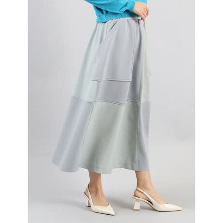シンプルなシルエットだからこそ斬新なデザインが映える異素材MIXスカート。