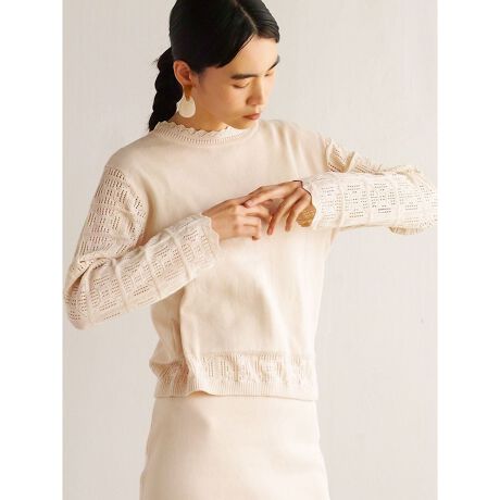 かぎ針編みライクなレースが華やかな印象をプラスするニットカーディガン。生産者や産地にこだわり、良質なトルコ産のオーガニックコットンを 100%使用し、ほどよい肉感ながら快適な着心地を叶えました。前後2WAY 仕様で、ボタンを留めてシンプルな PO としてもご着用いただけます。ご自宅で手洗い可能なのも嬉しいアイテムです。同シリーズのタイトスカート合わせたセットアップコーデもおすすめ。 ■TRUECOTTONとは