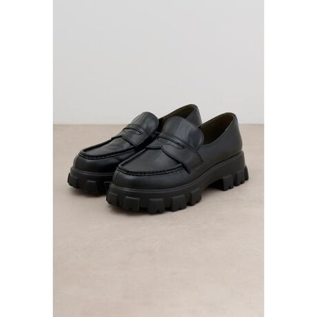 2023 Autumn&Winter item ・ 今季トレンドのボリュームソールのローファー。 ・ローファーとは、靴紐がついていない革靴のことを指します。 ・靴紐がない分、他の靴と比べて着脱が楽なことから、「怠け者」という意味の「ローファー」という名がつけられました。 ・ また、ローファーは1920年代に、英国王室や貴族階級のルームシューズとして使われていた歴史があります。 ・現代風にボリュームソールにアレンジし、ワイドパンツと合わせて着こなすのがおすすめです。 ・カビが生えにくく手入れや保管が簡単なのが特徴ですが、濡れたままで長時間放置したり、他の素材と密着させないように保管してください。移染することがあります。