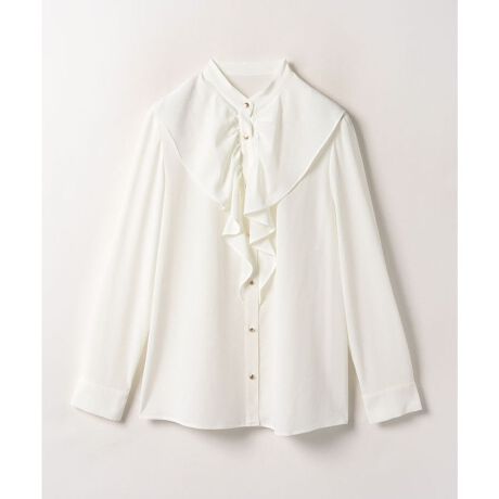胸元のディテールがポイントのブラウス 。肩を覆うほどの大きなラッフルフリルで落ち感のあるデザインに。柔らかいフリルで女性らしさを際立たせるレディなブラウスです。メタリックなボタンを採用することでほどよく甘さを軽減し、バランスよく仕上げました。一枚着としても、インナーとしても着映える一着。【スタッフコメント】フロントのフリルが華やかなブラウス。合わせ方次第でキレイめにもカジュアルにも使えます。とろみがあってさらっとした生地なので肌触りが良いです。〇着用感透け感:白はややあり伸縮性:なし※手洗い可能フィッティングモデル(詳細画像)164cm B75 W59 H80 着用サイズ:02(M)