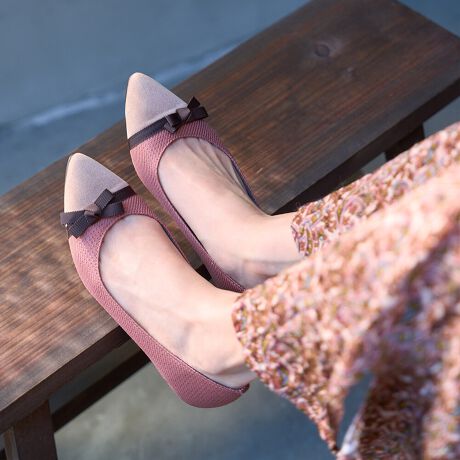 【23秋冬新作】サイドリボン コンビネーションパンプス